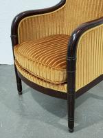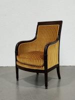 BERGERE en acajou sculpté et mouluré, les supports d'accotoirs à décor de palmettes stylisées Début XIXème