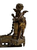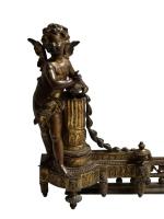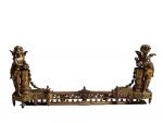 Paire de DEVANTS DE CHENET et BARRE DE FOYER en bronze à décor d'angelots H.: 39 cm L.: 96 cm
