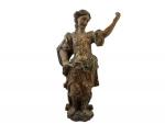 FEMME en armure Bois peint avec restes de polychromie H.: 73 cm (accidents et restaurations)