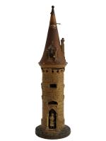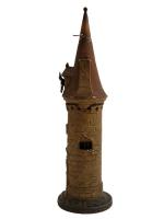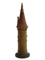 BAROMETRE en métal peint en forme de tour de château H.: 22.5 cm