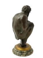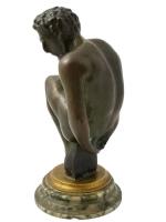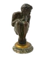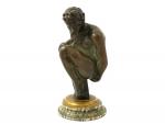 SUJET en bronze patiné représentant un homme accroupi, la base en marbre H.: 15.5 cm