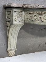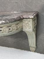 CONSOLE D'APPLIQUE en bois sculpté, mouluré, ajouré et rechampi, dessus marbre Epoque Louis XVI H.: 53.5 cm l.: 125 cm P.: 45 cm