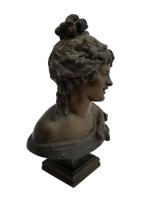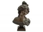 BUSTE DE DAME en bronze patiné, présenté sur un piédouche Circa 1900 H.: 24 cm (le piédouche désolidarisé)