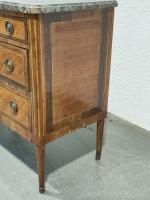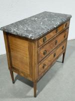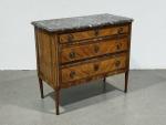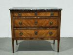 COMMODE en bois naturel et bois de placage, ouvrant à trois tiroirs en façade, les montants à cannelures simulées, estampillée J.A. ARTZT, dessus de marbre