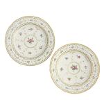 PARIS - Manufacture du duc d'ANGOULEME Paire d'assiettes rondes en porcelaine à décor polychrome et or Début XIXème D.: 25 cm (fêles et égrenures)