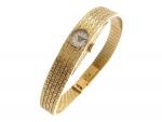 MONTRE bracelet de dame en or jaune, mouvement mécanique. Pds brut: 42.9g, signé sur le cadran au dos un numero difficilement lisible est gravé, long bracelet 17 cm, avec sa boite abimée