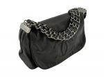 CHANEL, Sac à main en cuir d'agneau noir, agréments en métal argenté, triple anses à chaînes entrelacées de lanière de cuir. Carte d'authenticité n°11272017