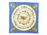 HERMES Paris " Promenade de Longchamps" par Phiippe Ledoux, 1ere édition en 1965 re 1970 Carré en soie imprimée fond creme bordure bleu 90 x 90 cm