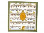 HERMES Paris " Paris-London" par Philippe LEDOUX , 1ere édition en 1966 Carré en soie imprimée bordure vert 90 x 90 cm