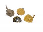 MEDAILLE religieuse or poids 1.6 g on y joint 3 pendentifs fantaisie dont un petit casque à pointe