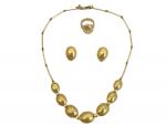 Superbe PARURE en or jaune composée d'une bague (TDD 52), clips d'oreilles et collier long 42 cm, poids total 70.2 g