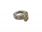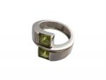 BAGUE en or gris sertie de 2 péridots, poids : 10,7 g TDD 53