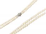 COLLIER perles double rang fermoir or poids 65 g long max 60 cm