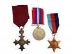 Royaume-Uni Lot de 3 décorations : Croix de l'Empire britannique, Commémorative 1939-1945, 1939-1945 Star. Ruban. Expert: Gaëtan Brunel