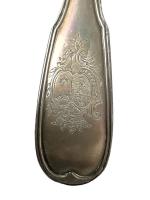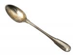 CUILLERE A RAGOUT en argent, modèle filets, gravée d'armoiries d'alliance sous une couronne de marquis Vannes, 1760-65 Maitre orfèvre: René Louis MOREAU, reçu maitre en 1728 L.: 30.5 cm Poids: 212 gr