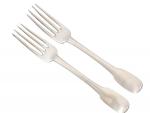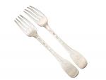 Paire de FOURCHETTES en argent, modèle uniplat, gravées "religieuses hospitalières" Rennes, 1734 Poids: 130 gr