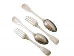 Suite de deux COUVERTS en argent, modèle filets, chiffrés sous...