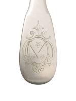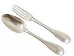 COUVERT en argent, modèle uniplat, gravé d'armoiries Paris, 1740 Maitre orfèvre: Joseph Gabriel AGARD, reçu en 1725 Poids: 158 gr