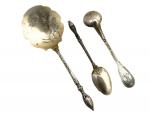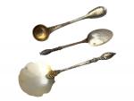 LOT en argent comprenant une cuillère commémorative, une louche à moutarde et une pelle à...