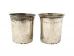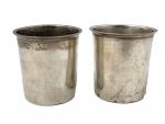 Paire de TIMBALES droite en argent uni, le col souligné de filets, gravée Paris, 1819-1838. Orfèvre:...