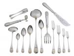 MENAGERE en argent, chiffré dans un écusson, comprenant: