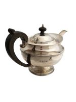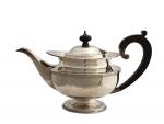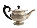 THEIERE en argent uni reposant sur un piédouche, la poignée et la prise en bois noirci Travail anglais H.: 14 cm Poids: 456 gr