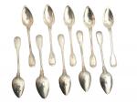 Dix CUILLERES A THE en argent, modèle filets, chiffrées