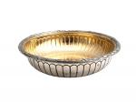 JATTE ronde en argent, l'intérieur vermeillé, modèle à côtes, la bordure moulurée d'une frise de feuilles rubanées