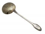 CUILLERE A SAUPOUDRER en argent et vermeil, modèle à palmettes, chiffrée Minerve. Orfèvre: Emile PUIFORCAT L.: 21 cm Poids: 74 gr