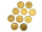 Lot de 10 souverains en or Lot conservé en banque, vendu sur désignation