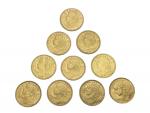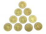 Lot de 10 pièces de 20 francs or au coq Lot conservé en banque, vendu sur désignation