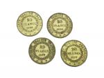 4 pièces de 20 francs or au génie Lot conservé en banque, vendu sur désignation