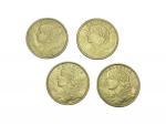 4 pièces de 20 francs or suisses Lot conservé en banque, vendu sur désignation