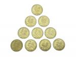 Lot de 10 pièces de 20 francs or au coq Lot conservé en banque, vendu sur désignation