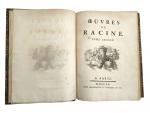 RACINE (Jean), Oeuvres, Paris, Le Breton, 1760, 3 vol. in-4, reliures en maroquin brun, dos à nerfs orné de pièce de titre, tomaison, douze planches et illustrations de Jacques de Sève (quelques restaurations, traces d'humidité éparses principalement dans le tome III)