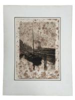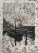 René PINARD (1883-1938) Canal en Hollande, 1909. Gravure signée, datée et justifiée 16/25 en bas 41 x 30.5 cm (importantes piqûres)