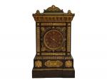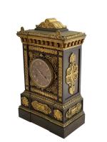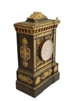 PENDULE borne en forme de temple en bronze doré et patiné, à décor de frises, feuillages, oves, le cadran signé "Sthonval Jne", suspension à fil Style Empire, fin XIXème H.: 52 cm