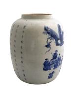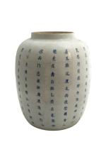 Chine, XVIIIe siècle, Importante jarre en porcelaine blanche à décor en bleu sous couverte de...
