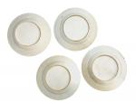 CHINE Compagnie des Indes Quatre assiettes rondes en porcelaine à décor famille rose et Imari XVIIIème D.: 23 cm (fêles et égrenures)