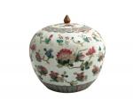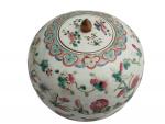 CHINE Pot couvert en porcelaine à décor polychrome et or H.: 22.5 cm (très légères égrenures et sauts d'émail)