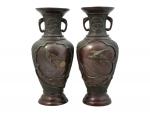 INDOCHINE Paire de vases en bronze Fin XIXème H.: 37 cm