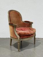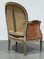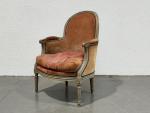 BERGERE en bois mouluré et rechampi, les montants cannelés Style Louis XVI H.: 91 cm (fentes, usures)