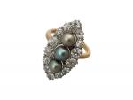 BAGUE marquise monture en or jaune, au centre 3 perles entourage de diamants de taille ancienne poids 5,8 g TDD 47