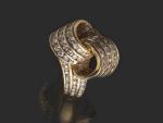 BAGUE or jaune noeud pavé de petits diamants, poids 10,4g,...