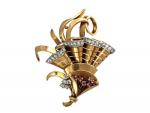 BROCHE clip en or jaune sertie de 29 diamants taillés en brillant et petits rubis poids 28 g Travail des années 40-50