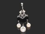 PENDENTIF or gris style Art déco et onyx, perles et diamants, poids 10,8 g, haut 6cm