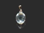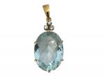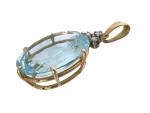 PENDENTIF en or jaune serti d'une aigue marine et 3 petits diamants poids brut 7.7 g haut avec bélière 42 mm