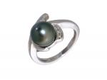 BAGUE or gris sertie d'une perle noire, poids 5,8 g, TDD 56