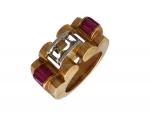 MONTURE de Bague Tank or jaune, poids brut: 12.1g TDD 53 (pierres roses et manques)