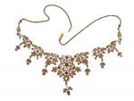 COLLIER draperie en alliage d'or 585 millièmes serti de rubis et perles poids 36 g, accident et manques